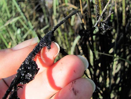 A stripe of crude paints Sarah and Jim’s field. Kate Shepphard/Mother JonesThe 12-inch Silvertip pipeline is buried five feet below the riverbed, which was supposed to be far enough to prevent a spill like this from happening. It’s still unclear what caused it to leak. There has been speculation that the increased flow in the river, erosion, and fast-moving debris caused or contributed to the break. And while the company claimed that the pipeline only carried light crude, two weeks after the spill it finally confirmed that it was also used to transport tar-sands oil—which is heavier, more toxic, and more corrosive than conventional crude. Richard Opper, the director of the Montana Department of Environmental Quality, told me that Exxon and the state responders likely won’t know for sure what caused the spill until they can unearth the pipeline in September or October, when the river’s waters have subsided.