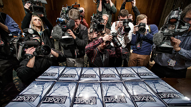 News cameras get a look as President Barack Obama's new $4 trillion budget plan is distributed by the Senate Budget Committee.J. Scott Applewhite/AP