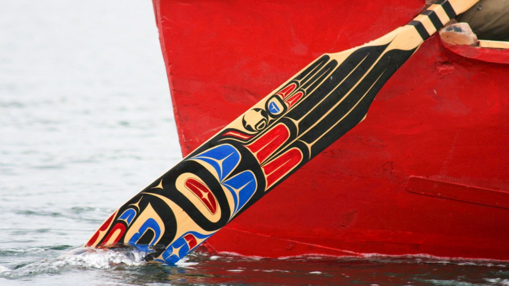 Arrival of canoes at Tribal Journeys, Cowichan Bay, B.C., Canada. Education Images/Universal Images Group/Getty