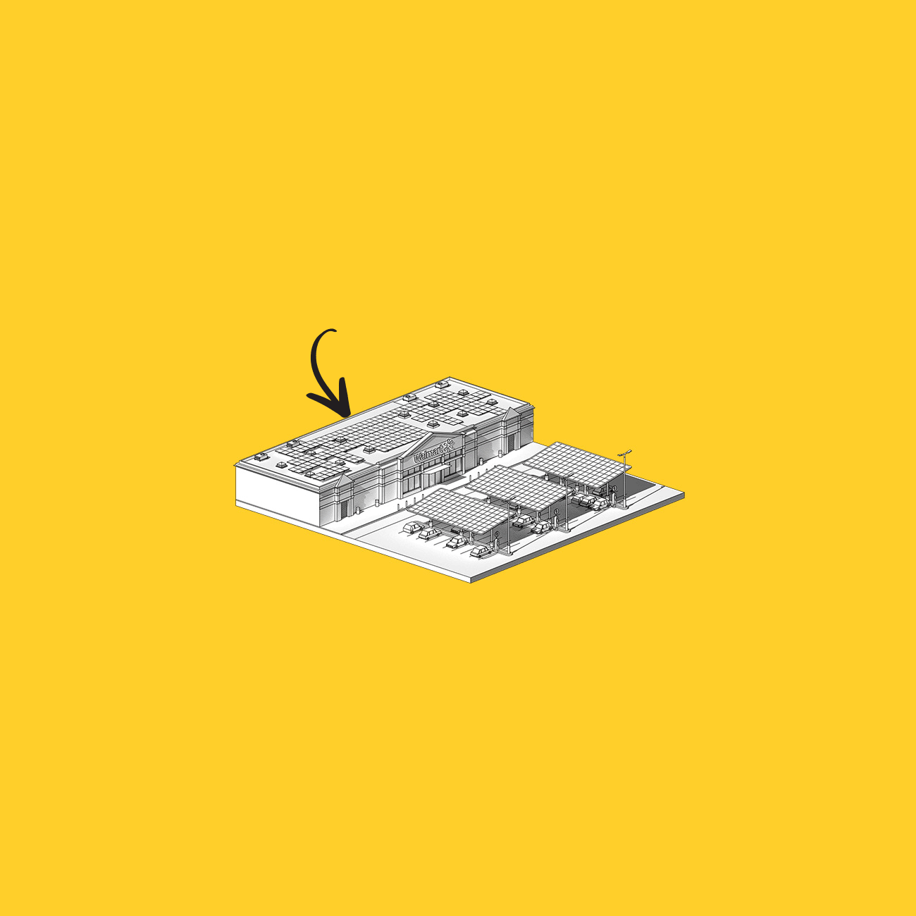 The transition to clean power will require massive solar expansion—not just home rooftop arrays but photovoltaic installations near population centers. Where to mount all the panels? One answer seems obvious: over parking lots, which also bake during the summer, contributing to dangerous “heat island” effects. Shading Walmart Supercenter lots with PV canopies, for instance, would generate loads of power and allow stores to entice shoppers with free EV charging and cooler lots. And a cool customer is a happy customer.