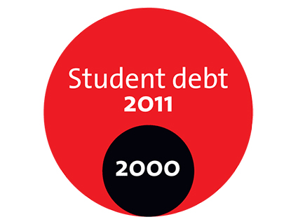 The amount that students owed quintupled between 2000 and 2011.