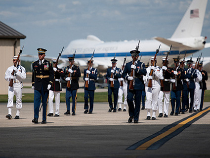 A US honor guard accompanies the remains of the four Americans slain in Benghazi on 9/11/2012.<a href="http://www.flickr.com/photos/usairforce/8009480292/sizes/m/in/photostream/" target="_blank">Flickr/US Air Force</a>