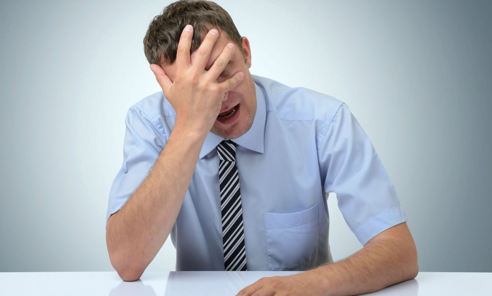<a href="http://www.shutterstock.com/pic-140684197/stock-photo-businessman-do-a-facepalm-on-white-table.html?src=u-Tjn-bVEqE21yDKyxEnvw-1-2">HomeArt</a>/Shutterstock