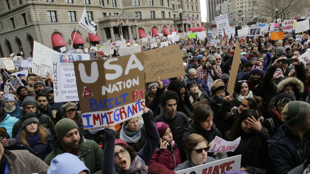 Protesters rally in Boston against President Trump's immigration order. Steven Senne/AP