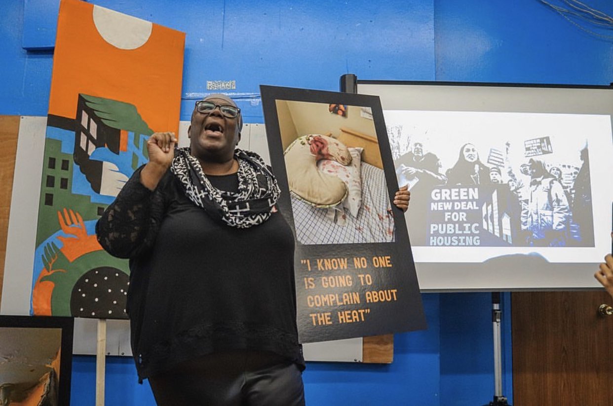 The activist gathering in the Pelham Parkway Houses in the Bronx was not only an outlet for tenants fed up with the system; it was also an effort to garner support for a piece of legislation, introduced by Ocasio-Cortez and Sanders, aimed at improving the living situations of public housing residents across the United States: A Green New Deal for Public Housing.