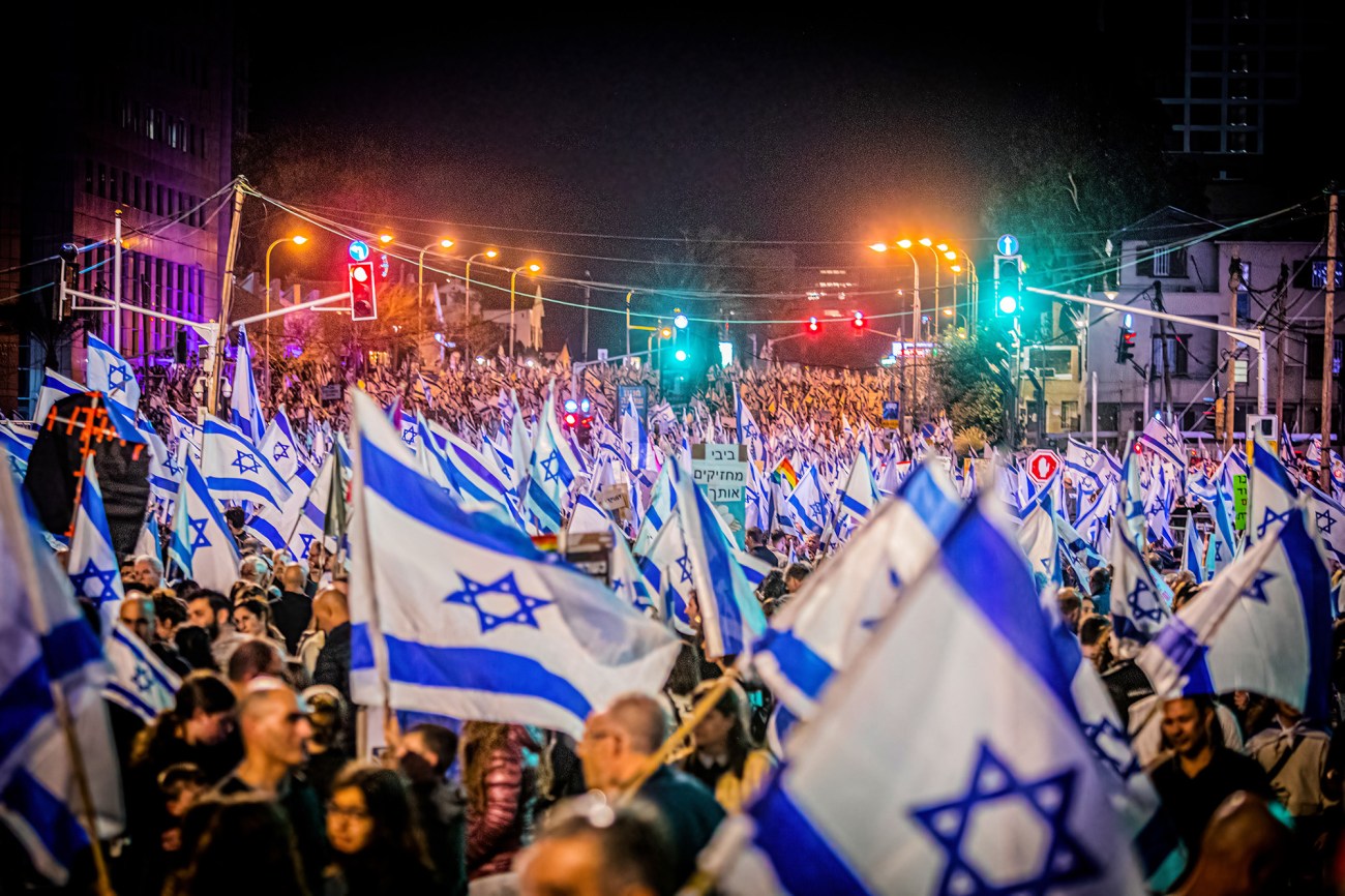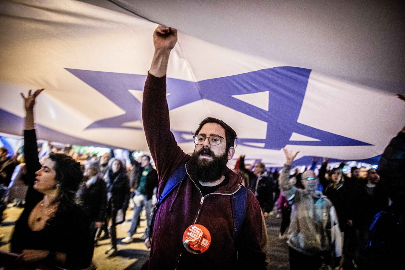 A scene from a “Day of Resistance” that brought out more than 200,000 protesters in Tel Aviv.