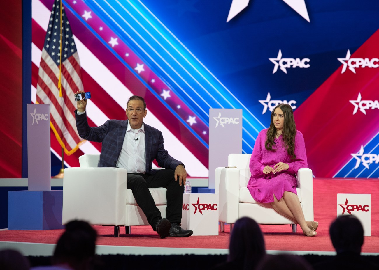Chaya Raichik of Libs of TikTok appears with radio host Larry O’Connor at the 2023 Conservative Political Action Conference.ImaZach D Roberts/NurPhoto/ZUMA