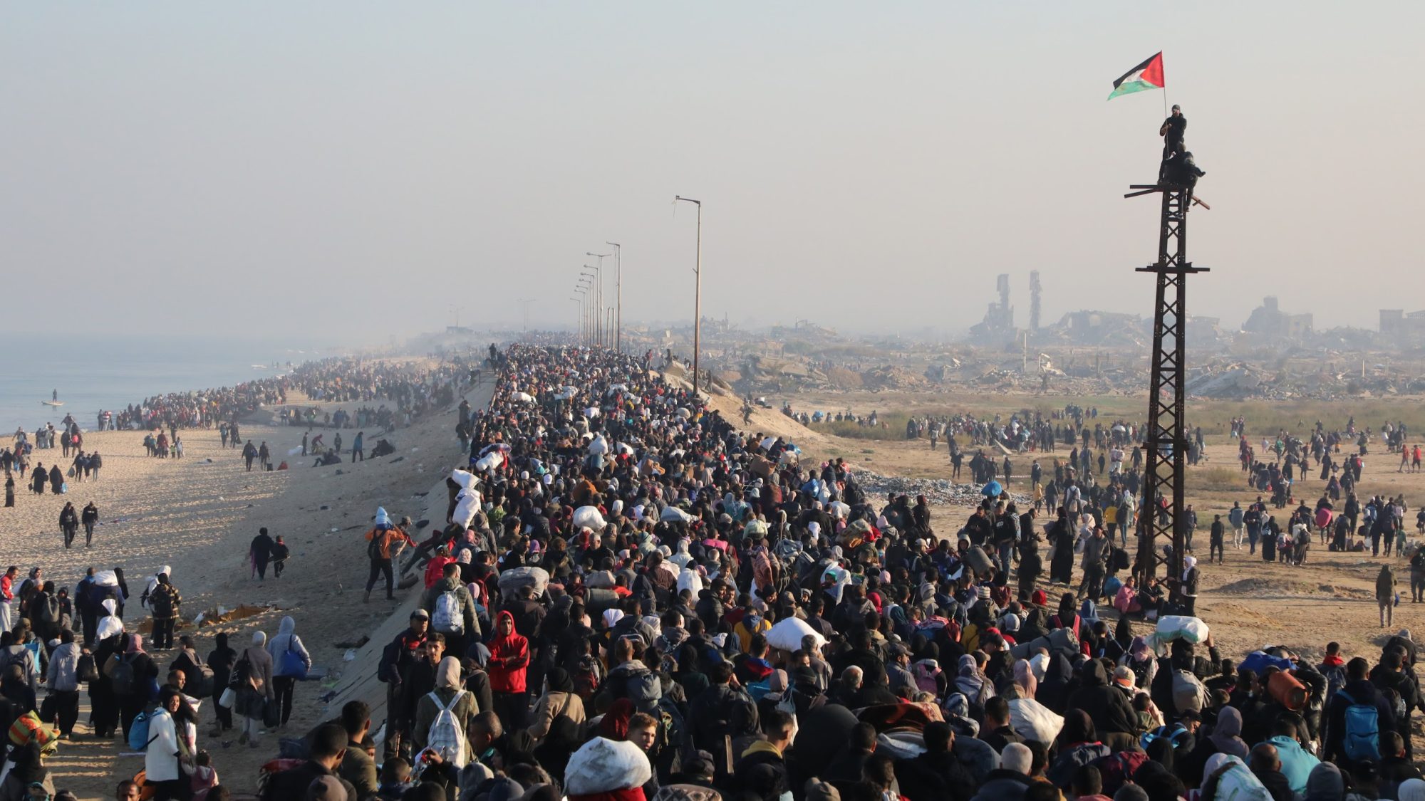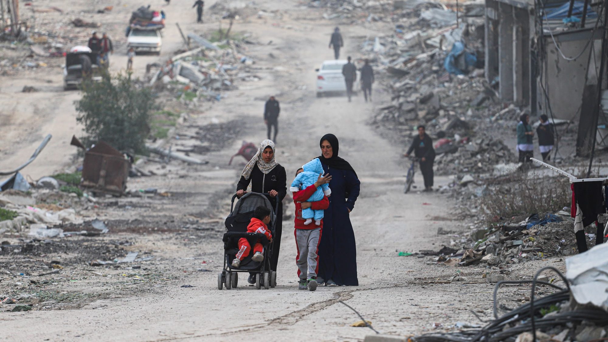 While Trump ponders violating international law, thousands of internally displaced Palestinians have been returning to northern Gaza. Mohammed al-Faran, 40, told the Washington Post last month that he and his wife, three kids, mother, and nephew walked seven hours in a draining journey from Deir al-Balah to Gaza City.