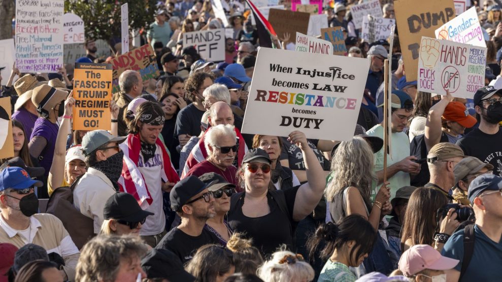 Notably, some of Trump’s typically most vocal mouthpieces—White House Press Secretary Karoline Leavitt, Communications Director Steven Cheung, Vice President JD Vance, and Donald Trump Jr.—all appeared to be silent on social media about Saturday’s protests. But as my colleague Tim Murphy wrote in a must-read piece about what the protests mean, Trump and his allies ignore or dismiss them at their own peril; they are proof that the mass opposition is everywhere, and that he does not, in fact, have a “mandate” for any of this: